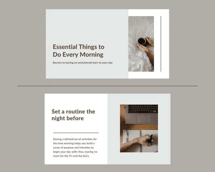 As you can see in the picture above, the colour of the text and the background belongs to the same family of colours i.e. Grey and Brown. This creates homogeneity among and within the slides, thus maintaining an organized and a pre-determined theme for your presentation.