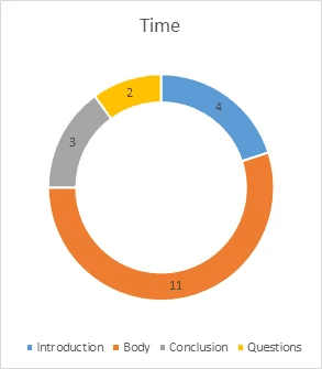 If you are unsure about how to divide these 20 minutes here is what you can do. You can allot specific time to the overall presentation. For instance, have a look at the table below.